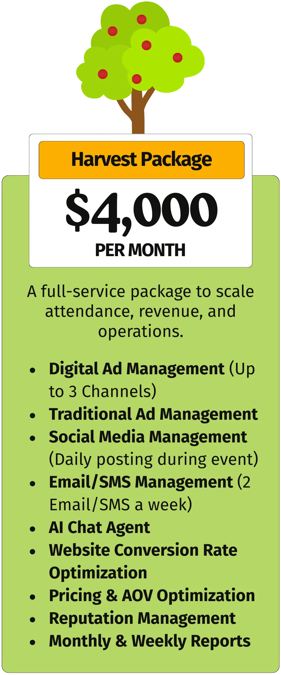 We help farms, pumpkin patches, corn mazes, and haunted venues increase attendance and revenue through proven marketing systems, without wasting money on guesswork.